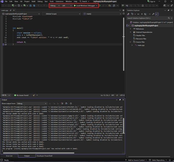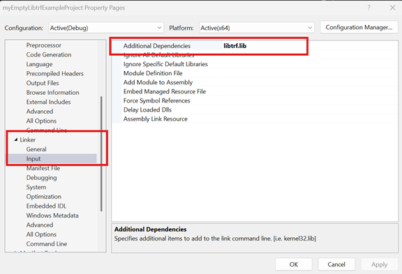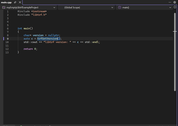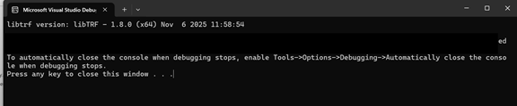 The second video below shows the steps of creating LibTRF example from scratch. A detailed script with screenshots are available below the video. You may pause and watch it at a slow speed if needed. No audio for the video.