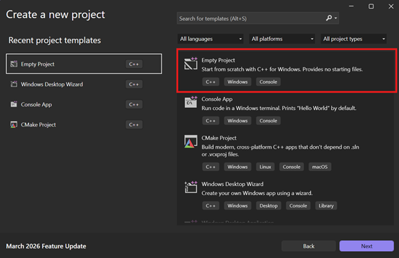 The first video below shows the steps of installing Visual Studio with the correct environment. You may pause and watch it at a slow speed if needed. No audio for the video.