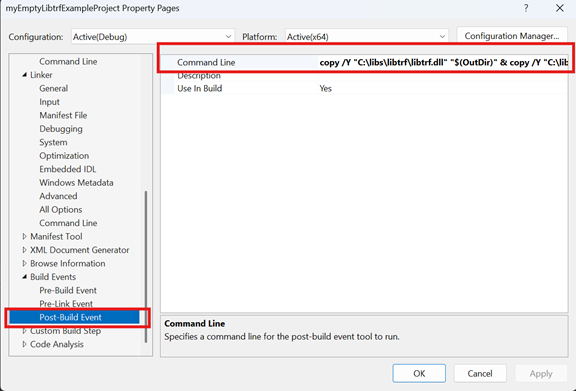 copy /Y "C:\libs\libtrf\libtrf.dll" "$(OutDir)" & copy /Y "C:\libs\libtrf\libusb-1.0.dll" "$(OutDir)" & exit 0